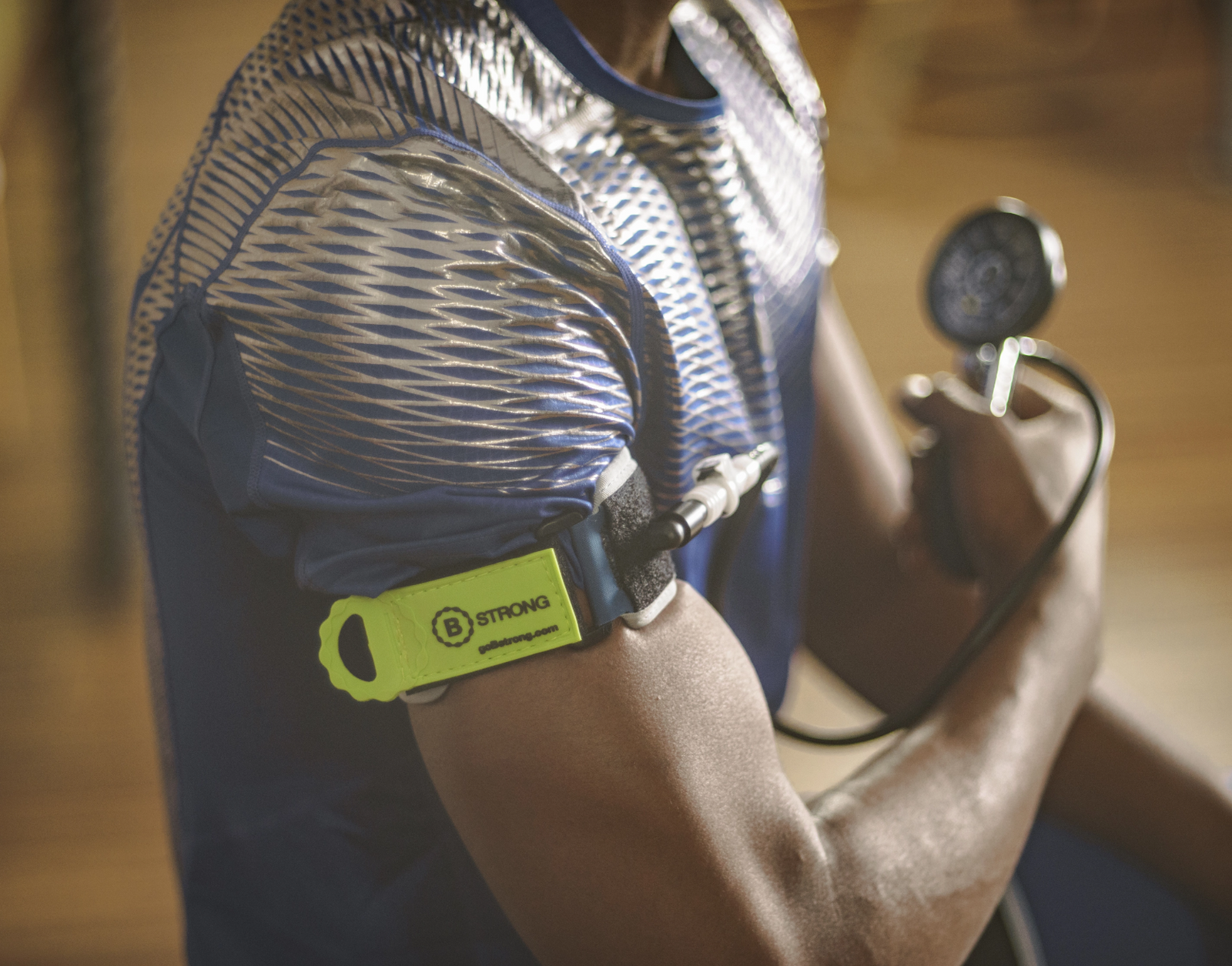 When using B Strong, not only is recovery time reduced but exercise duration is reduced. Workouts are 2.5-4.5% more powerful with an 18-20% increase in strength, when compared to not using the system. When muscles fail and fatigue in non-BFR training, muscles get damaged. However, with B Strong BFR, oxygen and blood are safely restricted to working muscles, which quickly produces strong fatigue in the muscle. The induced strong fatigue triggers the brain to release a systemic hormonal cascade - including a robust production of human growth hormone - making users stronger with little or no muscle damage thanks to the lighter weights needed.
